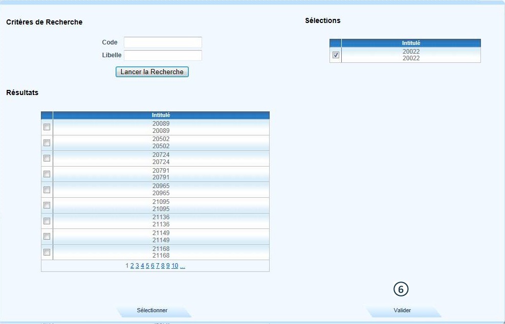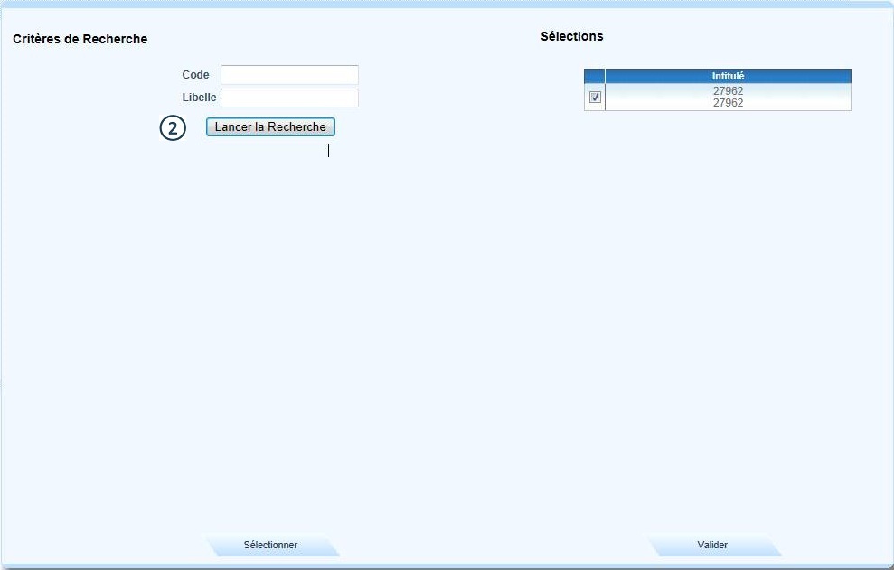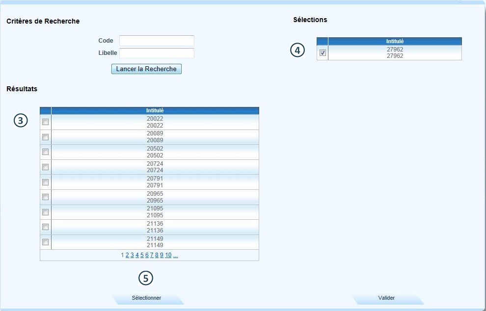 Vérifier la nouvelle sélection dans la liste "Sélections", puis cliquer sur Valider |