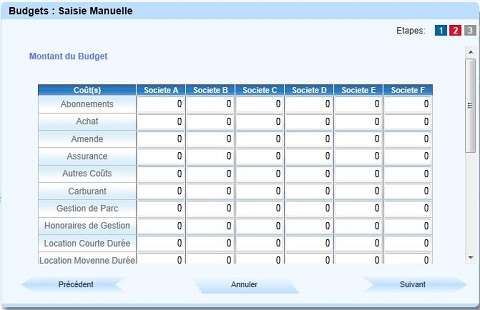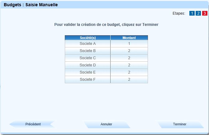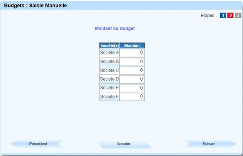 | Saisie d'un budget global par société | Saisie d'un budget par produit par société | |||