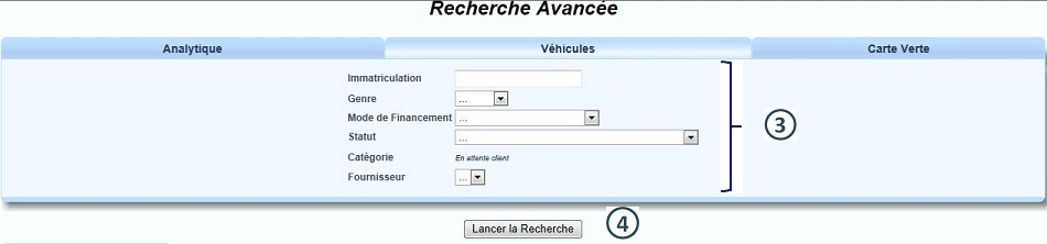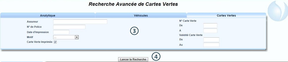 Dans le Menu "Cartes Vertes", cliquer sur "Recherche Avancée" |