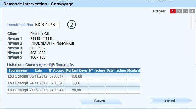 Dans le menu "Demandes Interventions", cliquer sur "Convoyage" |