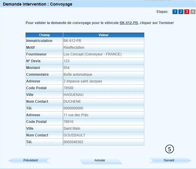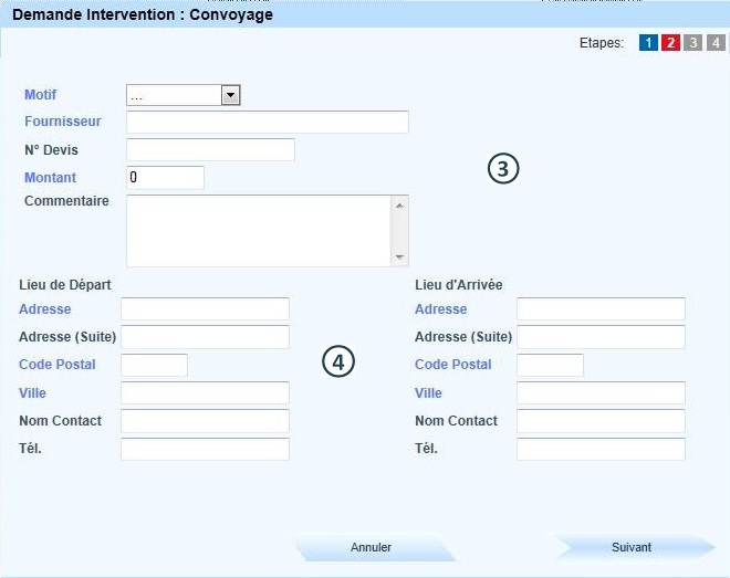 Renseigner les informations relatives aux lieux de départ et d'arrivée du convoyage |