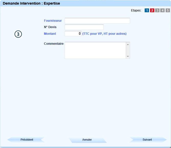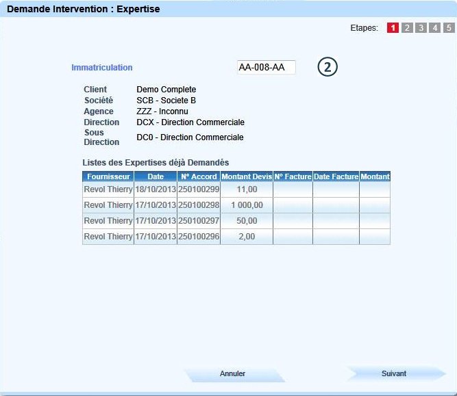 Dans le menu "Demandes Interventions", cliquer sur "Expertise" |