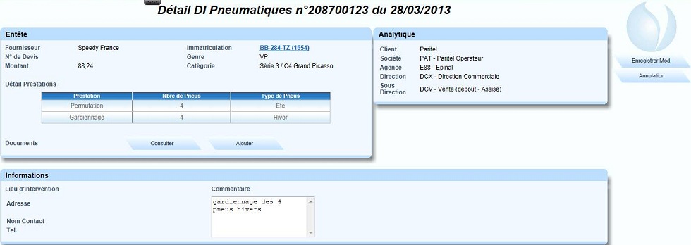 Saisir les modifications, puis cliquer sur "Enregistrer Mod." |