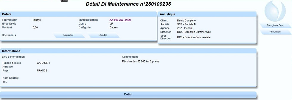Saisir le numéro de la DI concernée, puis sélectionner dans la liste déroulante |
