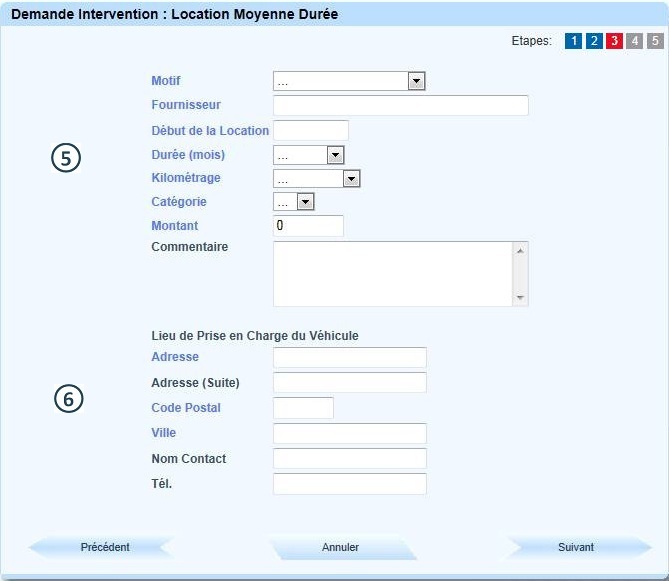 Renseigner les informations relatives au lieu de prise en charge du véhicule |