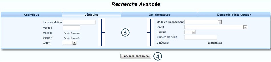 Recherche selon des critères liés aux Véhicules : Cliquer ici