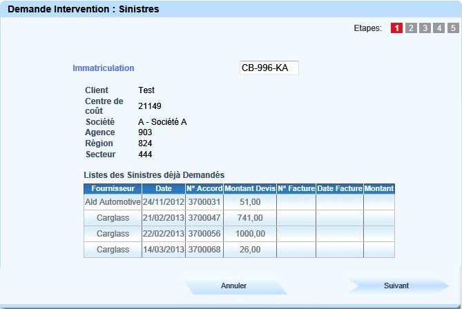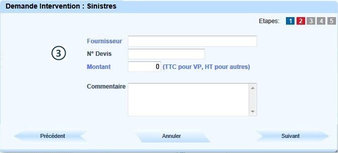 Dans le menu "Demandes Interventions", cliquer sur "Sinistre" |