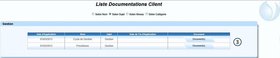 Pour accéder aux documents cliquer sur le bouton "Document(s)" correspondant |