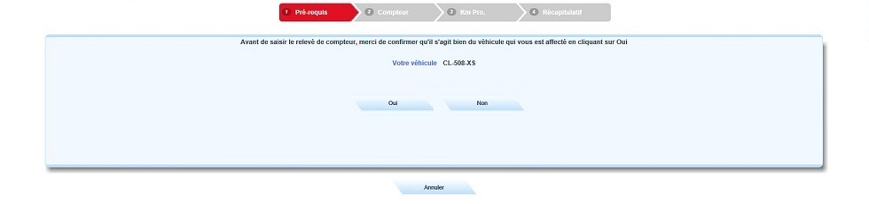 Si le collaborateur est affecté au véhicule identifié, cliquer sur "Oui", sinon cliquer sur "Non" |