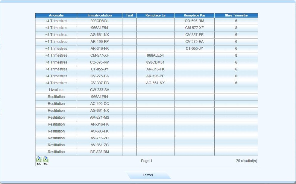 Liste des anomalies nécessitant une intervention |