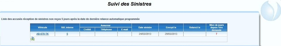 Tableau des sinistres en attente d'AR : Cliquer