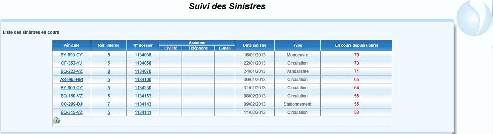 Tableau des sinistres en cours : Cliquer