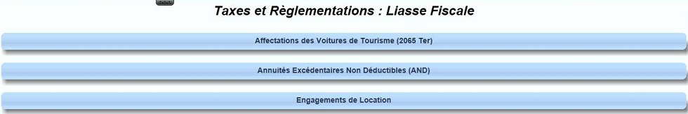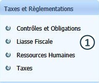 Dans le menu "Taxes et Règlementations", cliquer sur le sujet à consulter (exemple retenu dans l'aide en ligne "Liasse Fiscale") |