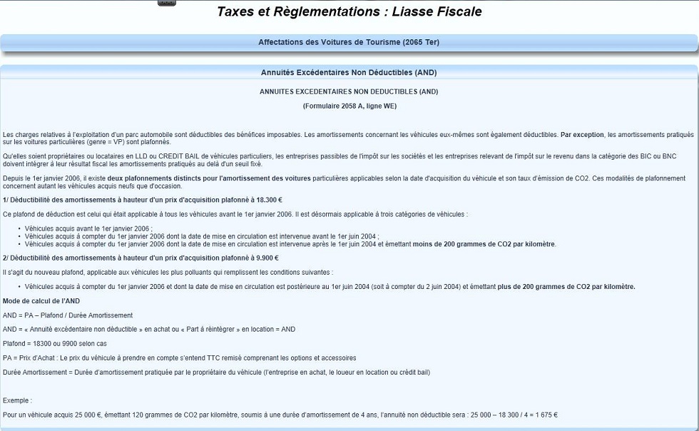 Cliquer sur l'encart à consulter (exemple retenu dans l'aide en ligne "Annuités Excédentaires Non Déductibles (AND)") |