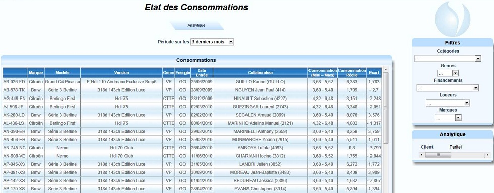 Dans le menu "Véhicules", cliquer sur "Etat des Conso." |