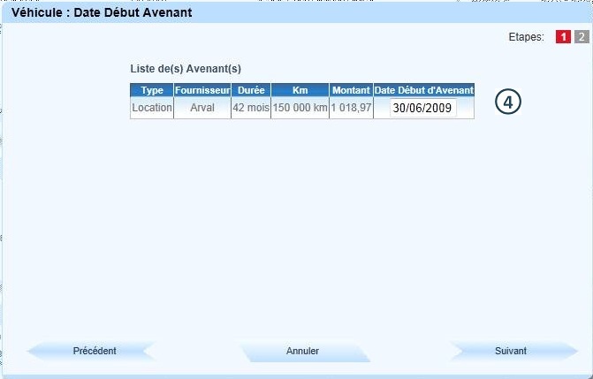 Cliquer sur "Date Début Avenant" |