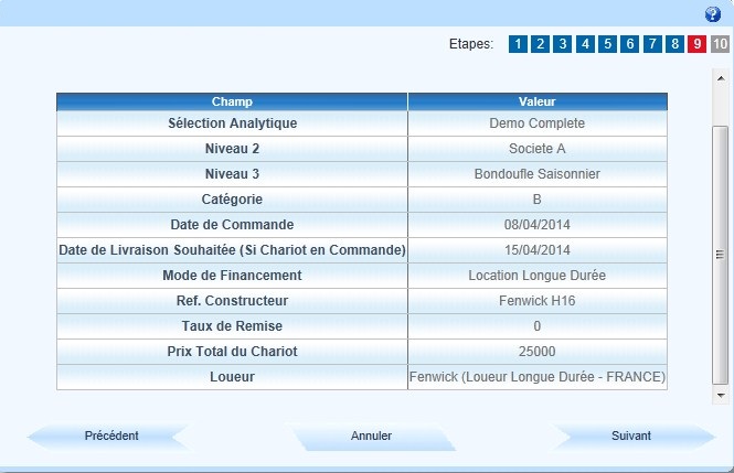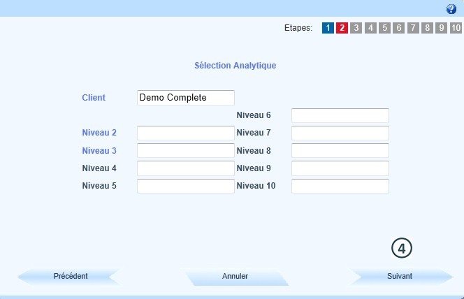 Pour sélectionner l'analytique recherché, suivre les étapes du processus Sélection Analytique, puis cliquer sur "Suivant" |