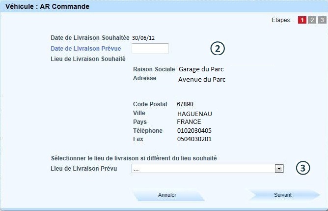Selectionner "Lieu de Livraison Prévu" indiqué sur le document transmi par le fournisseur, si celui ci est différent de "Lieu de Livraison Souhaité" |
