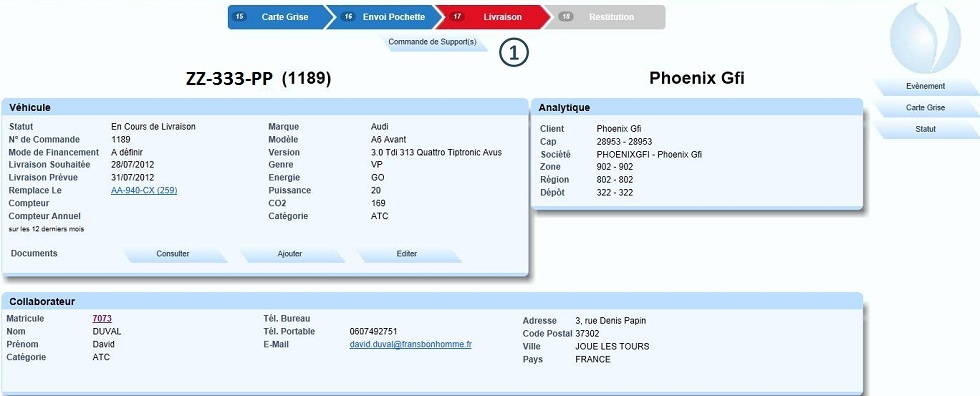 Cliquer sur le bouton "Livraison" |