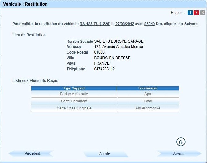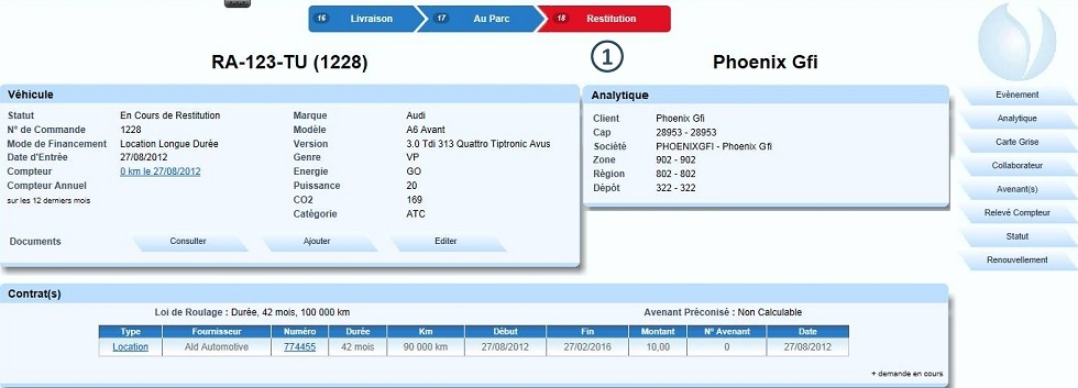 de Restitution" ! Affichage par défaut du lieu de livraison du nouveau véhicule si renouvellement |