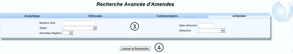 Dans le menu "Amendes", cliquer sur "Recherche Avancée" |