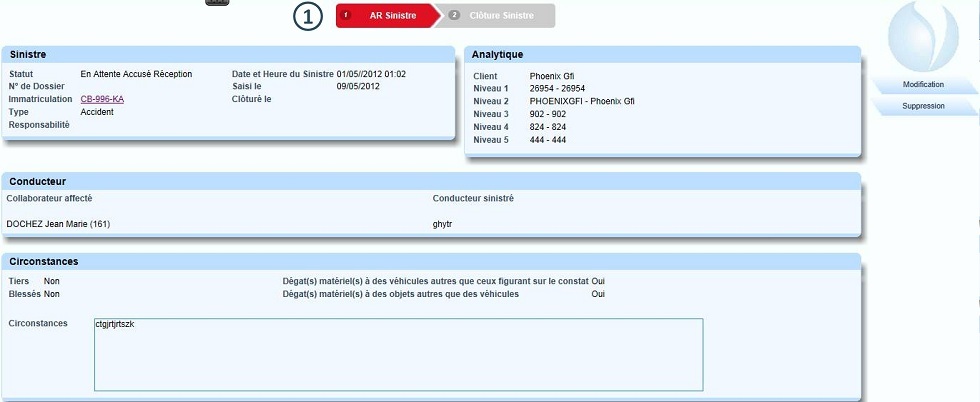 Cliquer sur "AR Sinistre" |