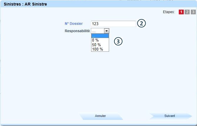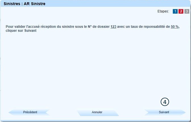 Renseigner le taux de responsabilité (affichage par défaut du taux enregistré lors de la saisie manuelle du sinistre) |