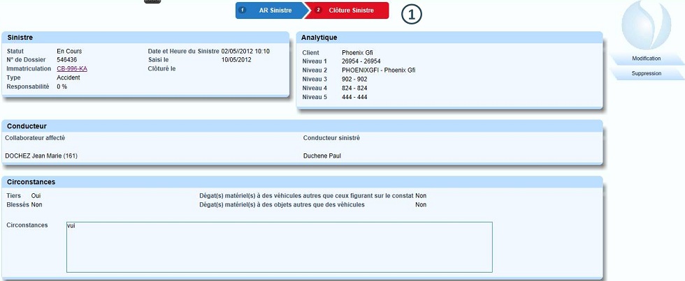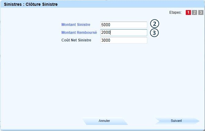 Renseigner le montant remboursé ; le Coût Net Sinistre se calcule automatiquement |