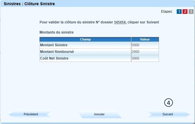 Renseigner le montant du sinistre |