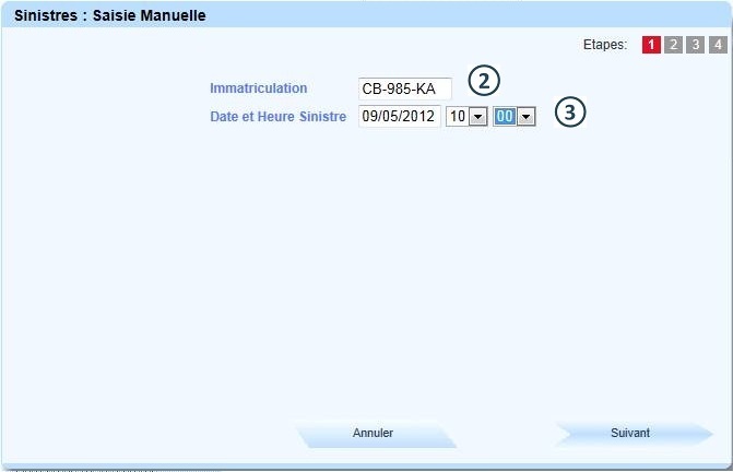 Sélectionner la date et l'heure du sinistre |
