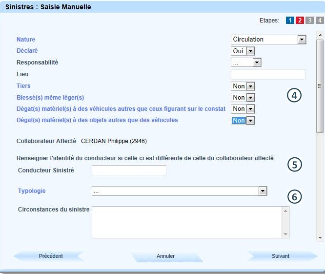 Renseigner le conducteur sinistré si celui ci est différent du conducteur affecté au véhicule |