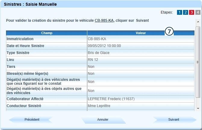 Dans le menu "Sinistres", cliquer sur "Saisie Manuelle" |