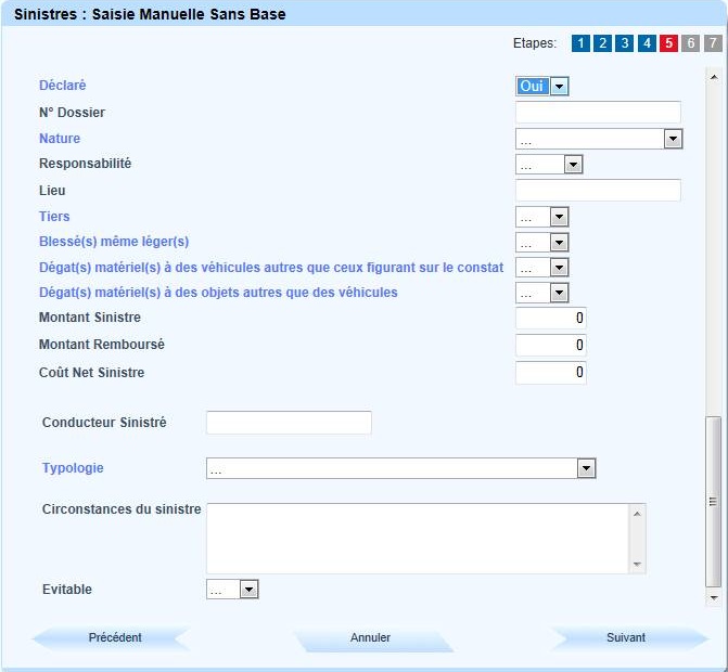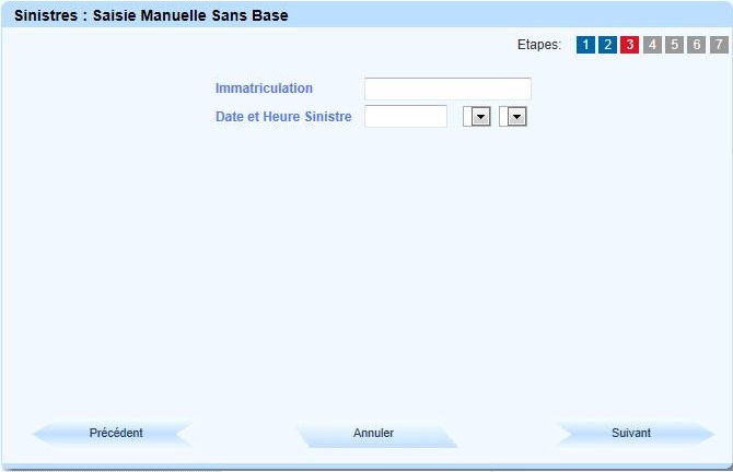 Dans le menu "Sinistres", cliquer sur "Saisie Manuelle sans Base" |