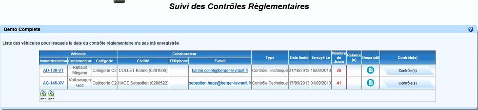 Cliquer sur le bouton "Contrôle(s)" correspondant au véhicule concerné |