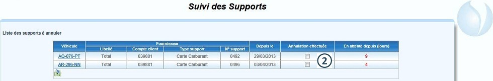 Pour enregistrer l'annulation du support cocher la case correspondante |