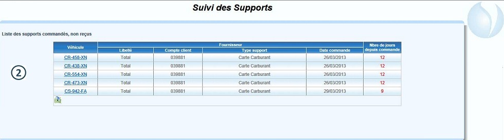Dans le Menu "Suivi du Parc", cliquer sur "Support(s)" |