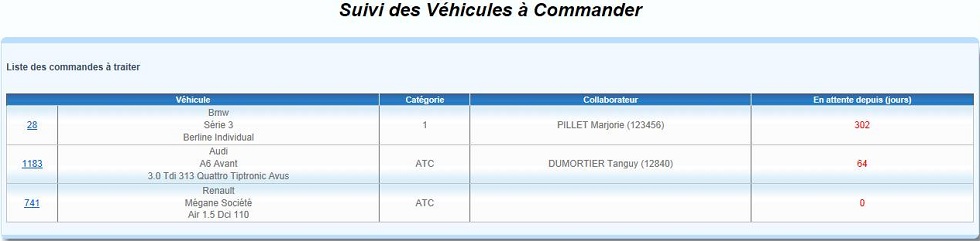 Dans le Menu "Suivi du Parc", cliquer sur "Véh. à Commander"