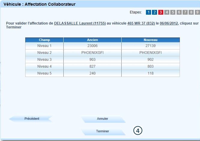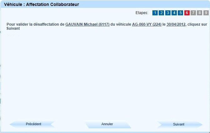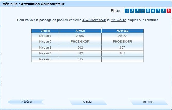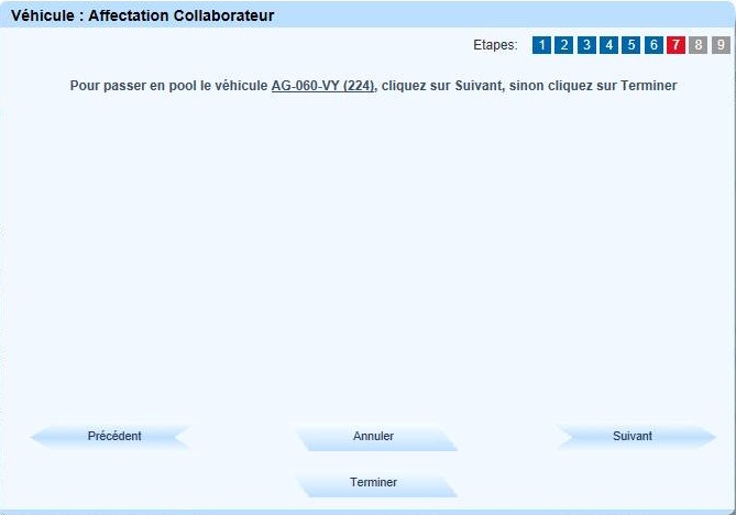 Cliquer sur "Suivant" pour passer le véhicule en pool, sinon cliquer sur "Terminer" |