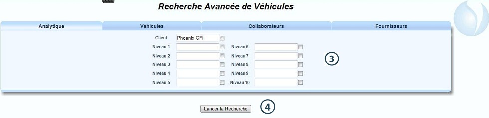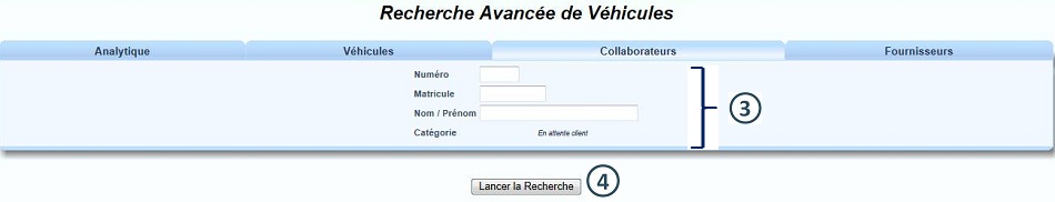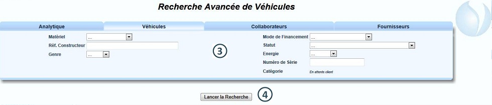 Dans le menu "Véhicule", cliquer sur "Recherche Avancée" |