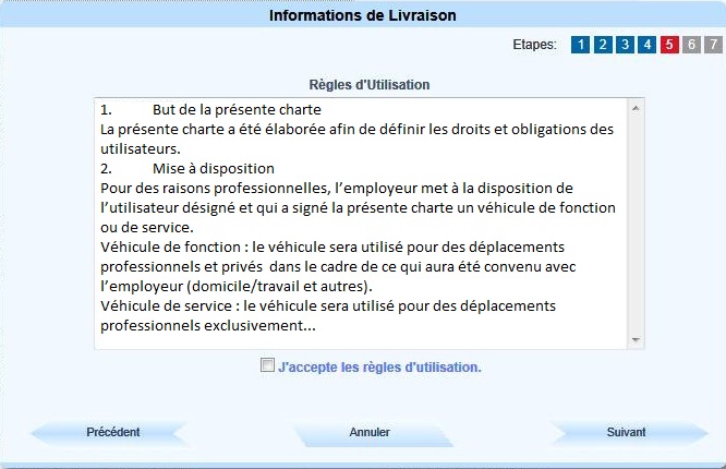 Cocher la case pour accepter les règles d'utilisation du véhicule |