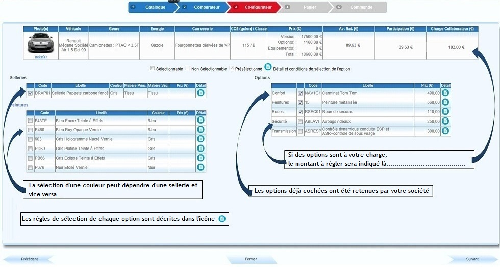 Pour effectuer le choix de votre futur véhicule, cliquer sur "Choisir". ! Un seul choix possible |